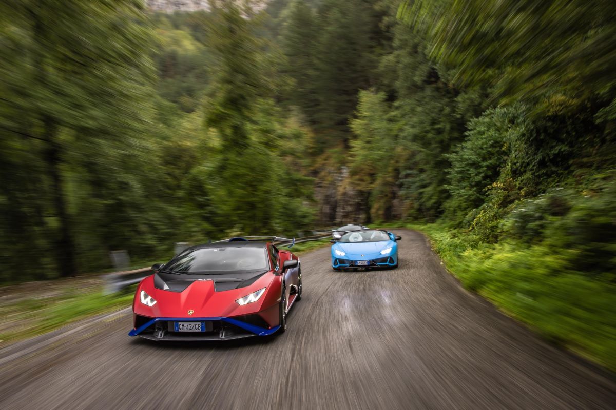 Con los colores del otoño como telón de fondo, toda la gama de modelos Huracán de producción actual recorrió las carreteras de los Apeninos desde Bolonia hasta Forte dei Marmi: un recorrido de celebración del Lamborghini V10 y del modelo que logró resultados de ventas tan destacados.